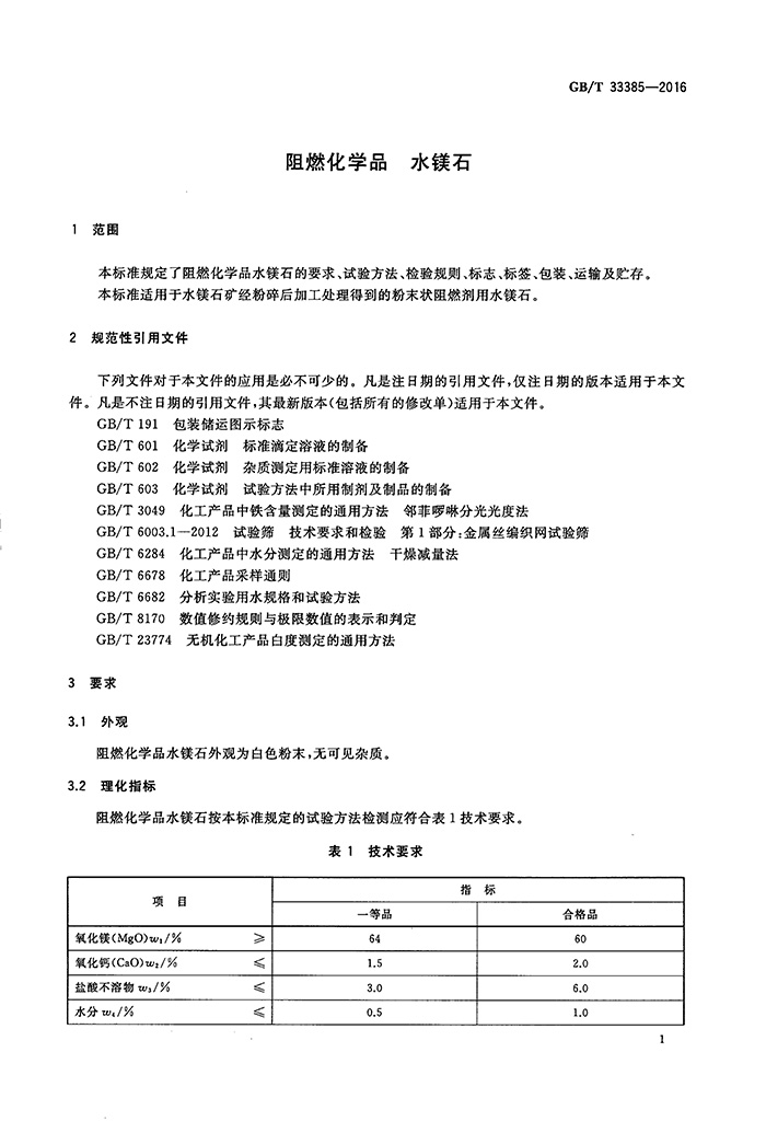 我司參與起草的GB/T33385-2016《阻燃化學(xué)品水鎂石》標準 于2017年4月頒布實施